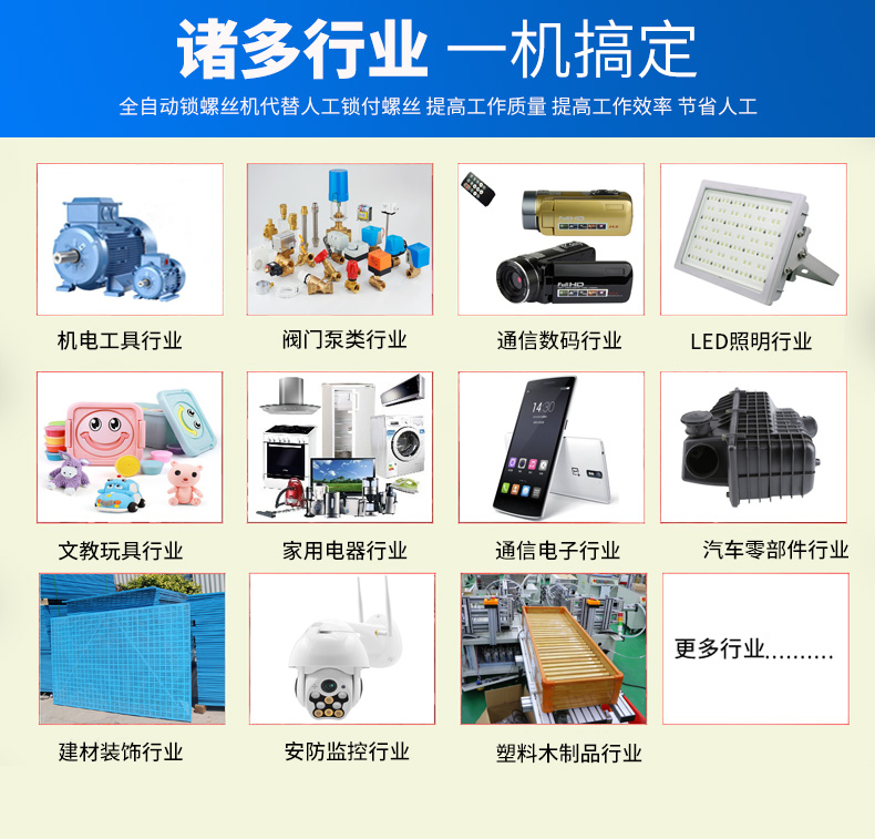 - 產品簡介: 該款自動打螺絲機,可以加散熱風扇連同墊片一起打螺絲,節省企業擰螺絲的時間,快速提升了產品生產效率。